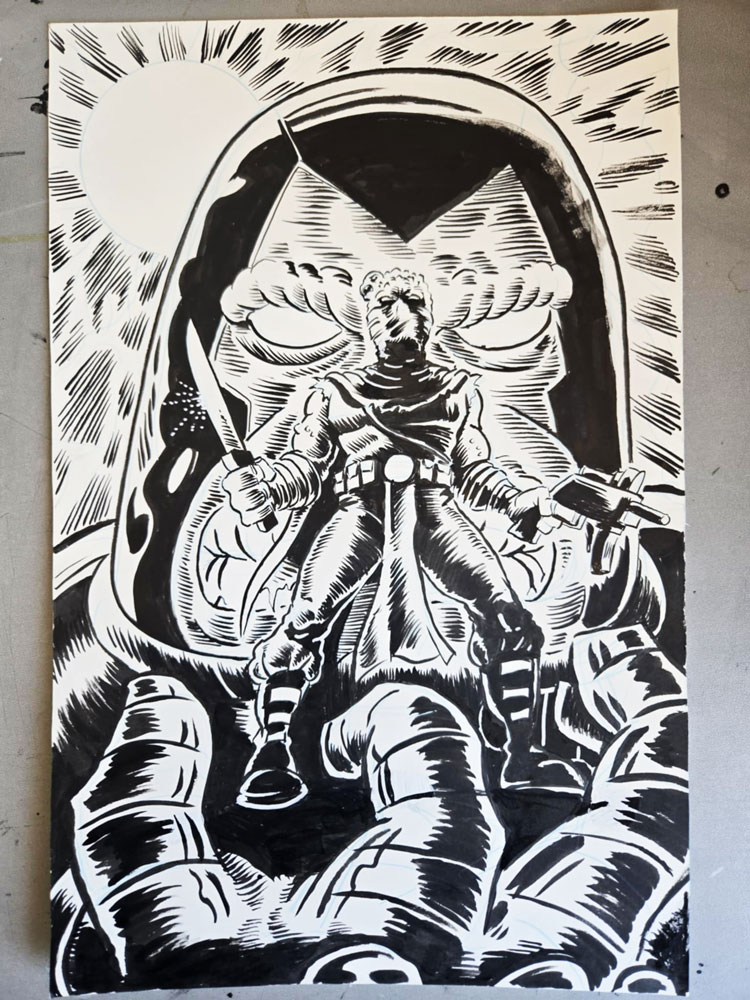 Blue Pencil, Pen, and Ink on 11x17 bristol. Backcover illustration for the forthcoming 2nd TPB collection of APE-MEN OF THE APOCALYPSE.