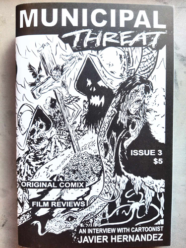 The first 3 issues of the MUNICIPAL THREAT anthology zine, for a super low price. Every issue is 72-pages of original comics, illustrations, film reviews, and interviews with creators.